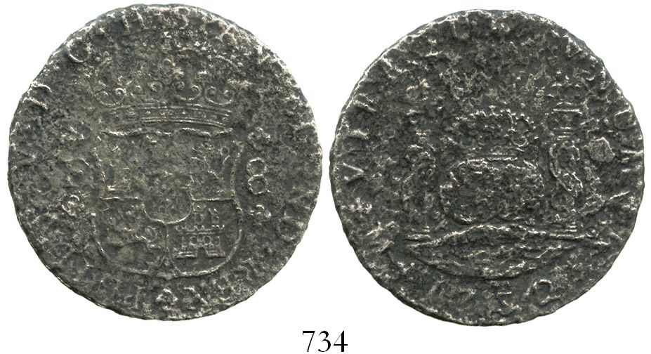 Mexico City, Mexico, pillar 8 reales, Philip V, 1732F, rare first year of pillars.