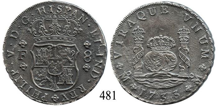 Mexico City, Mexico, pillar 8 reales, Philip V, 1733F, rare.