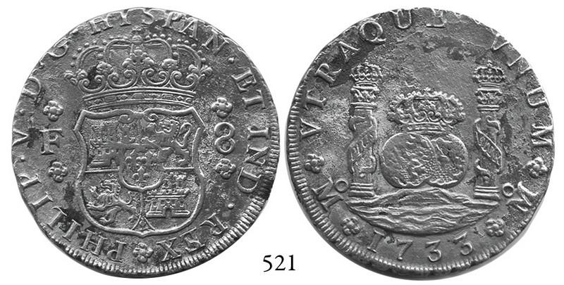Mexico City, Mexico, pillar 8 reales, Philip V, 1733F.