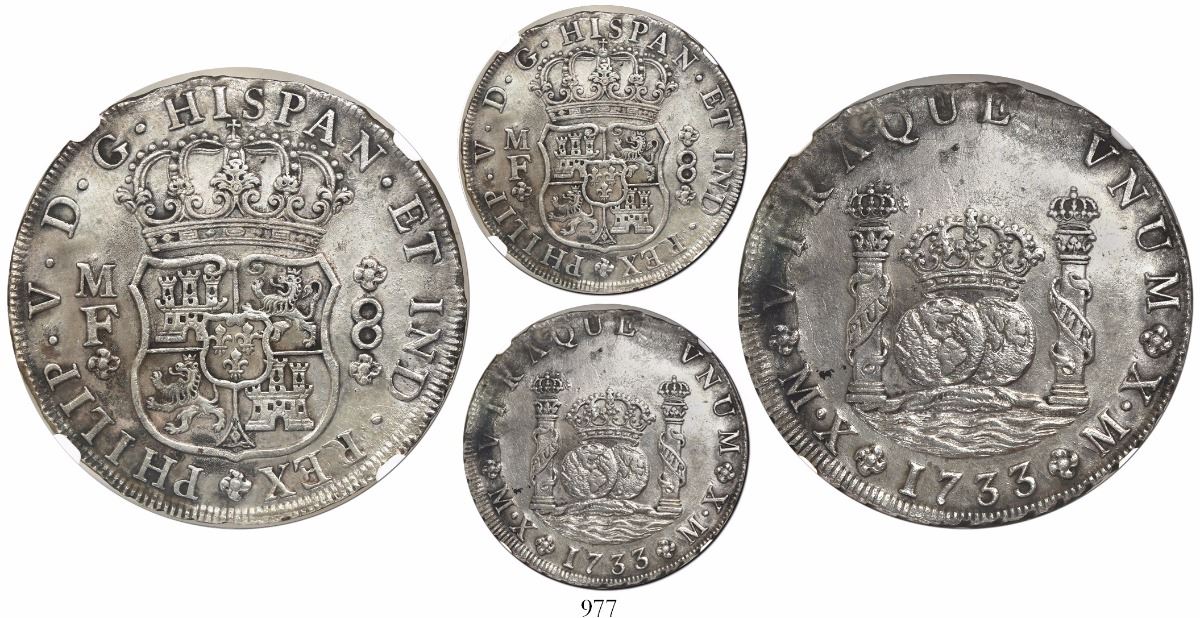Mexico City, Mexico, pillar 8 reales, Philip V, 1733MF, mintmark M.X, large crown, extremely rare