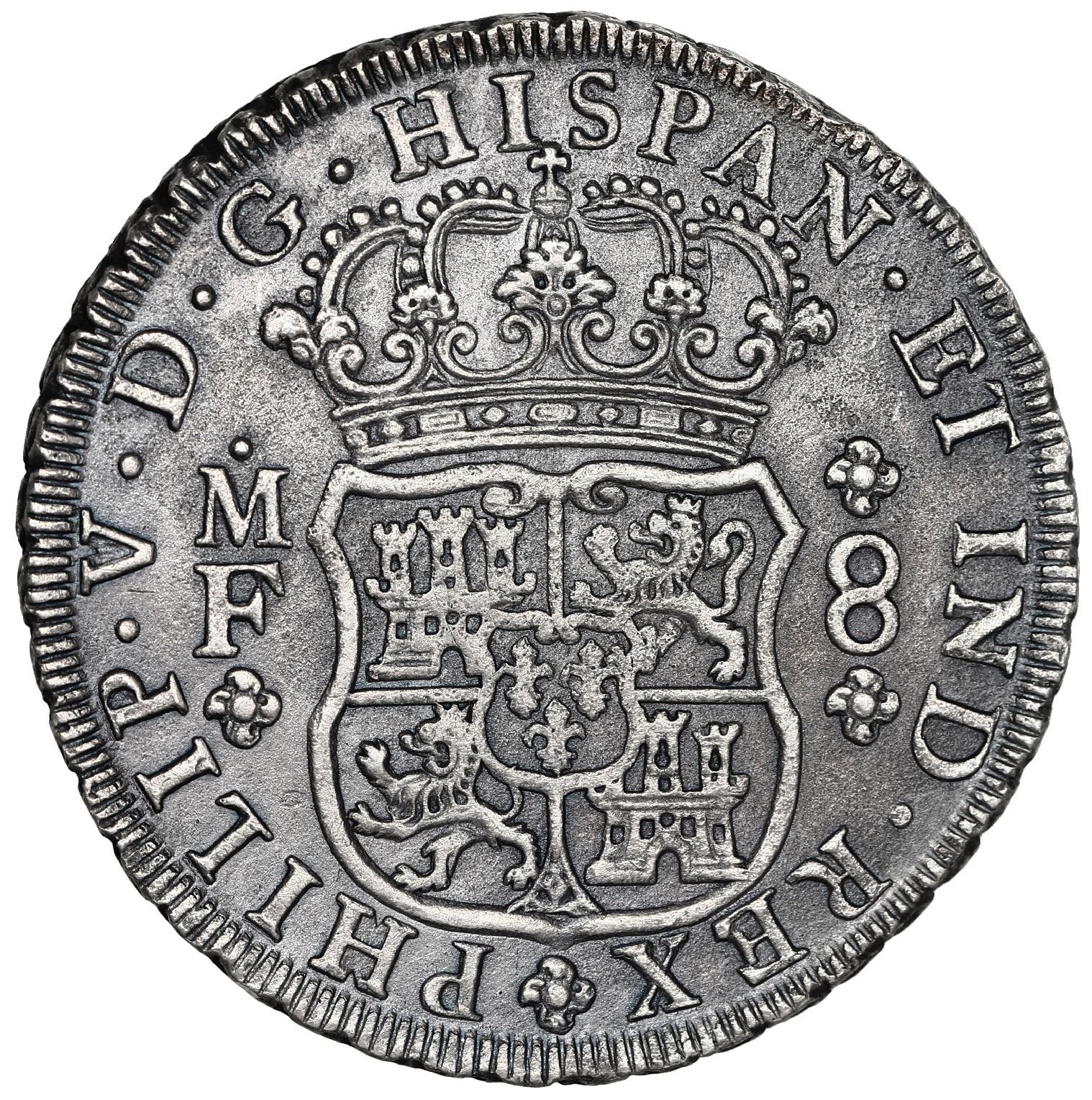 Mexico City, Mexico, pillar 8 reales, Philip V, 1734 MF, ex-Jones.