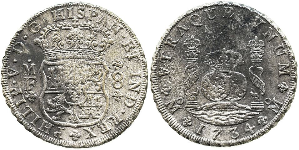 Mexico City, Mexico, pillar 8 reales, Philip V, 1734MF.