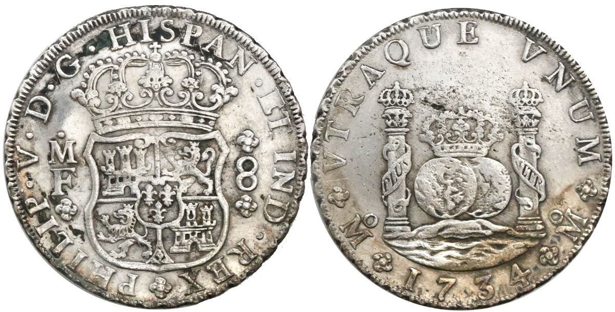 Mexico City, Mexico, pillar 8 reales, Philip V, 1734MF.