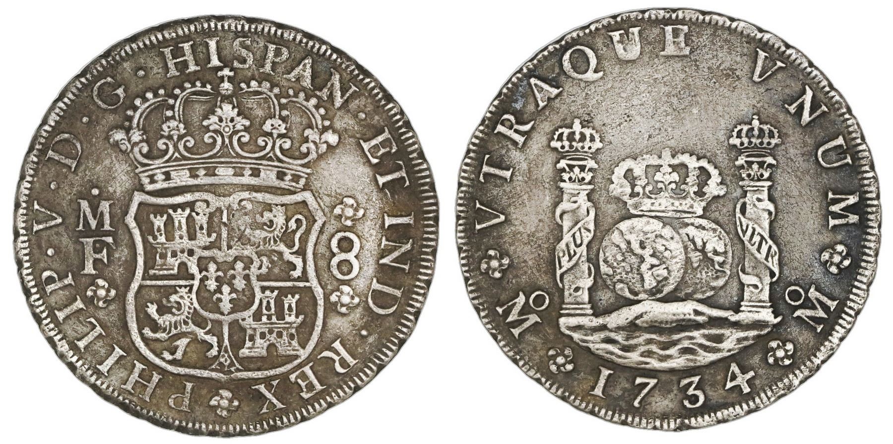 Mexico City, Mexico, pillar 8 reales, Philip V, 1734MF.