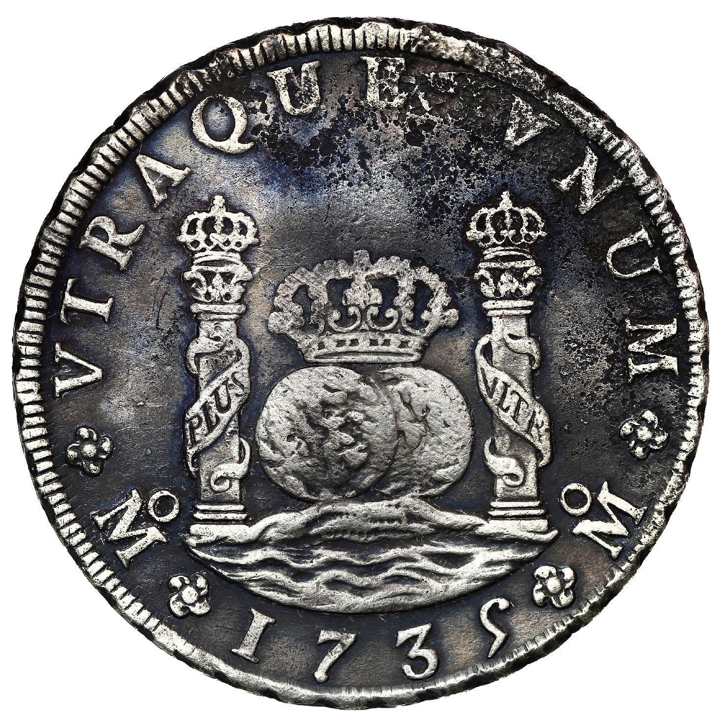 Mexico City, Mexico, pillar 8 reales, Philip V, 1735 MF.