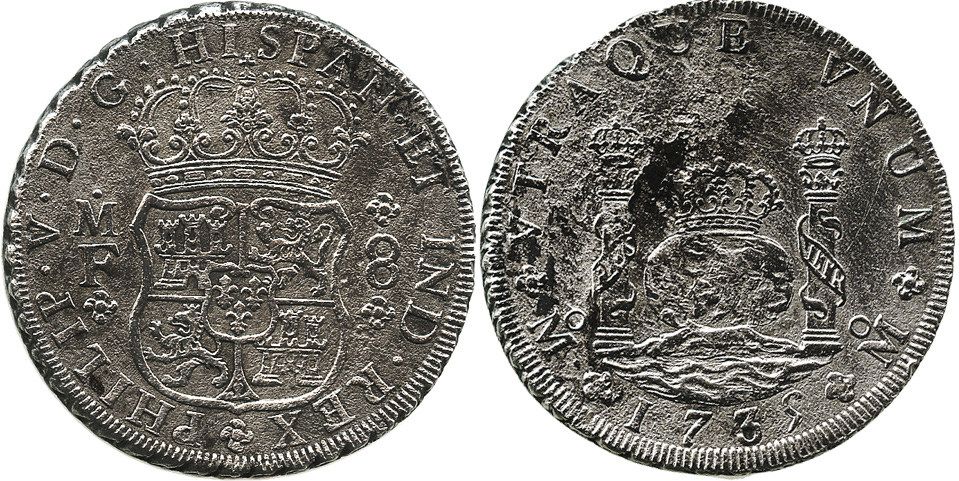 Mexico City, Mexico, pillar 8 reales, Philip V, 1735MF.