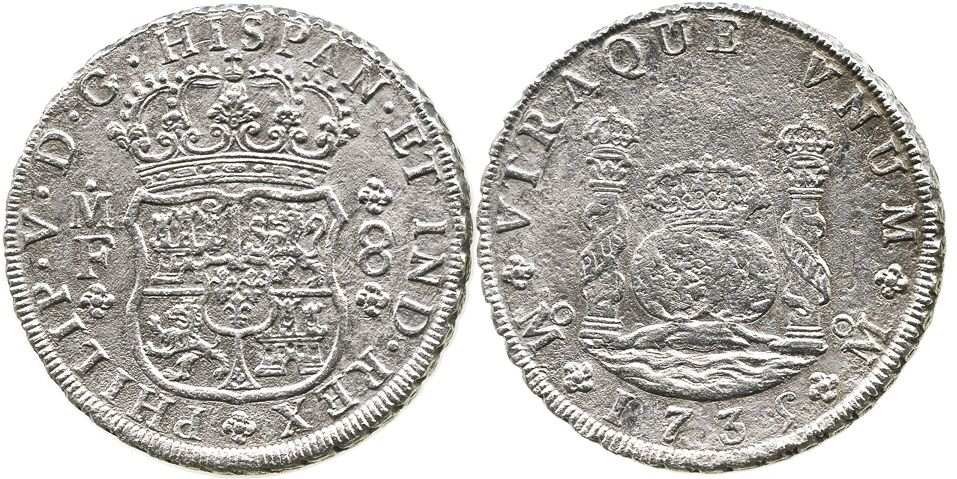 Mexico City, Mexico, pillar 8 reales, Philip V, 1735MF.