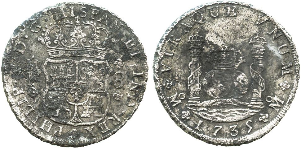 Mexico City, Mexico, pillar 8 reales, Philip V, 1735MF.