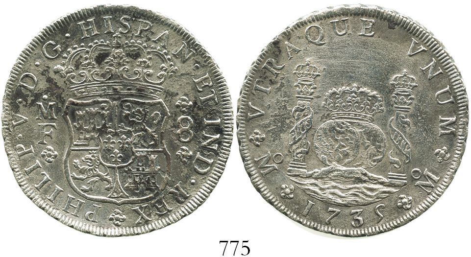 Mexico City, Mexico, pillar 8 reales, Philip V, 1735MF.