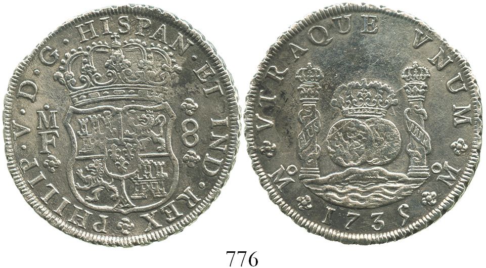Mexico City, Mexico, pillar 8 reales, Philip V, 1735MF.
