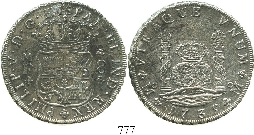 Mexico City, Mexico, pillar 8 reales, Philip V, 1735MF.