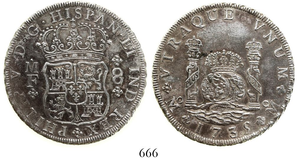 Mexico City, Mexico, pillar 8 reales, Philip V, 1735MF.