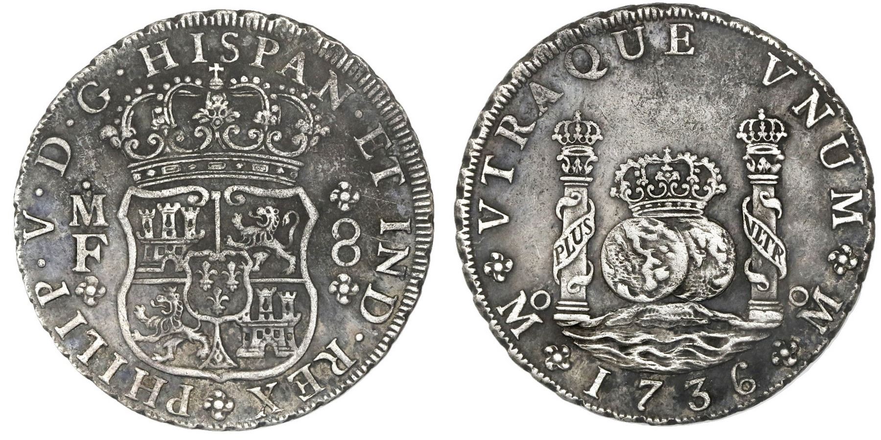 Mexico City, Mexico, pillar 8 reales, Philip V, 1736MF.