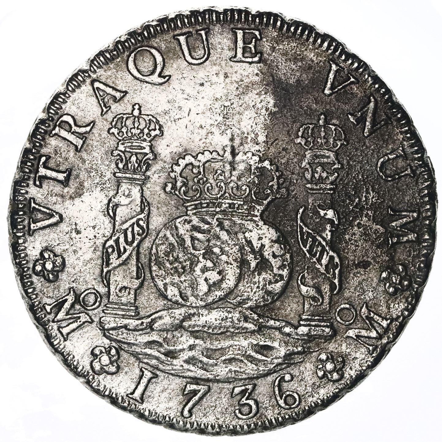 Mexico City, Mexico, pillar 8 reales, Philip V, 1736MF.