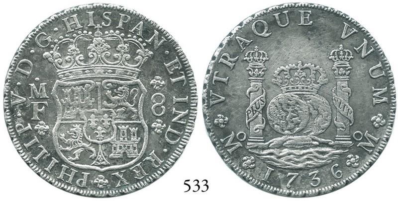 Mexico City, Mexico, pillar 8 reales, Philip V, 1736MF.
