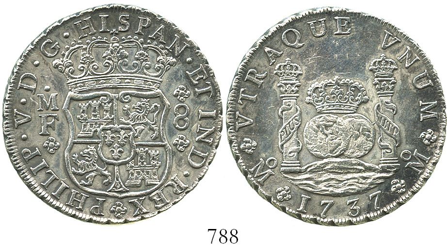 Mexico City, Mexico, pillar 8 reales, Philip V, 1737MF.