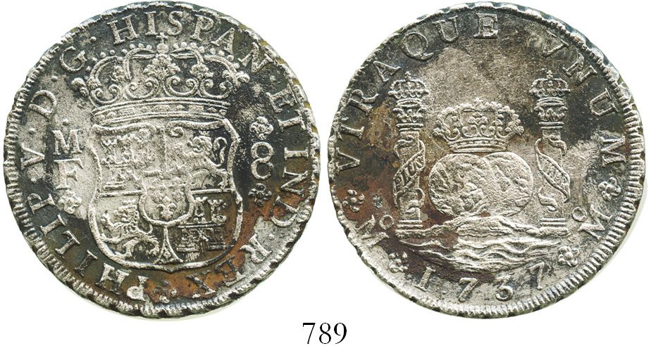 Mexico City, Mexico, pillar 8 reales, Philip V, 1737MF.