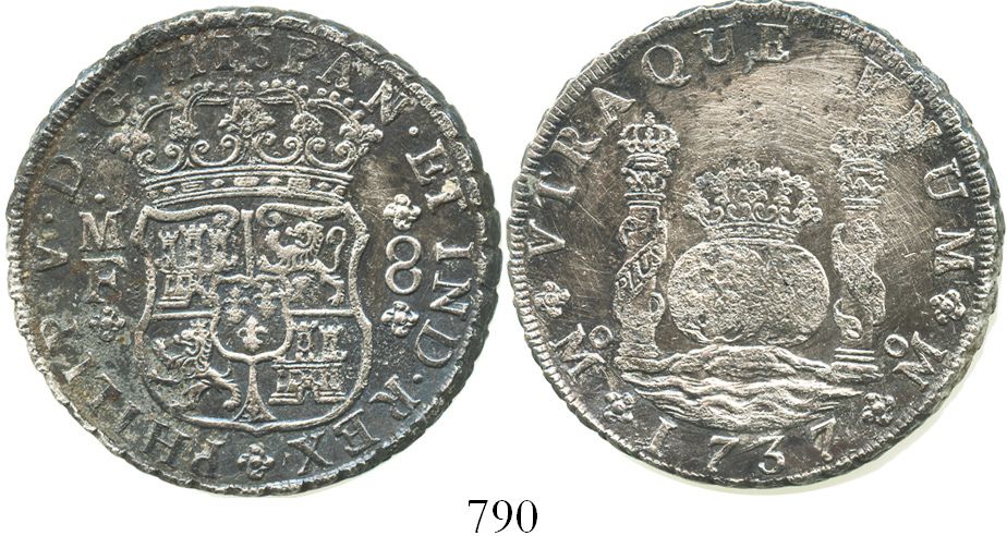 Mexico City, Mexico, pillar 8 reales, Philip V, 1737MF.