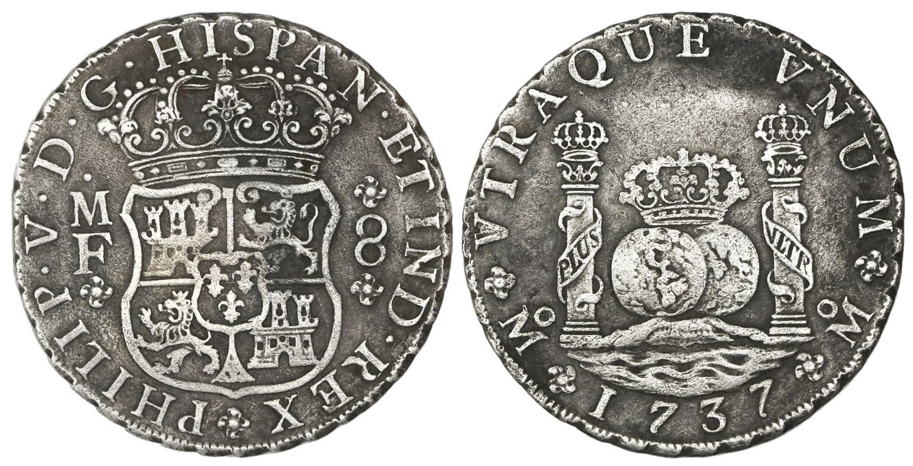 Mexico City, Mexico, pillar 8 reales, Philip V, 1737MF.