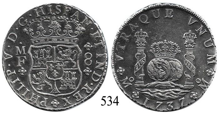Mexico City, Mexico, pillar 8 reales, Philip V, 1737MF.