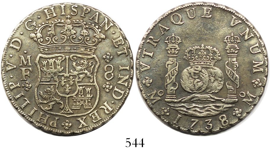 Mexico City, Mexico, pillar 8 reales, Philip V, 1738/7MF.