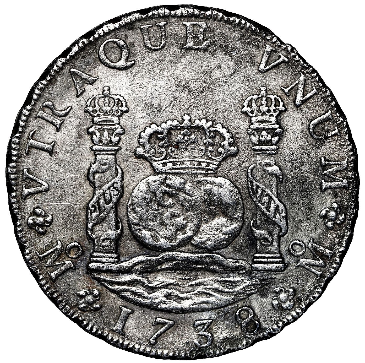 Mexico City, Mexico, pillar 8 reales, Philip V, 1738 MF.