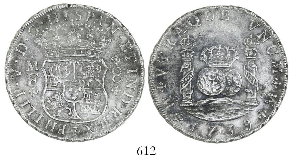 Mexico City, Mexico, pillar 8 reales, Philip V, 1739MF.