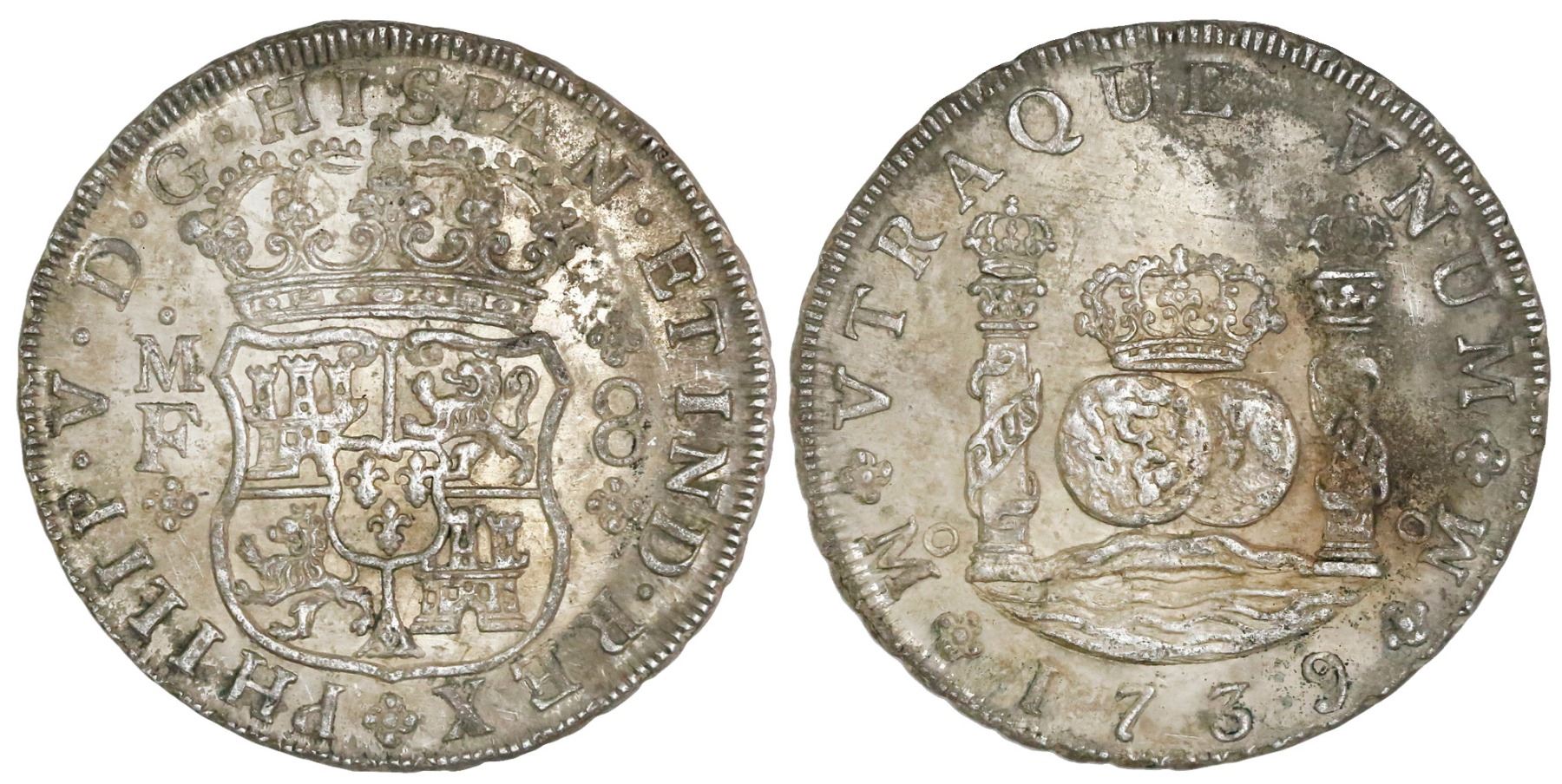 Mexico City, Mexico, pillar 8 reales, Philip V, 1739MF.