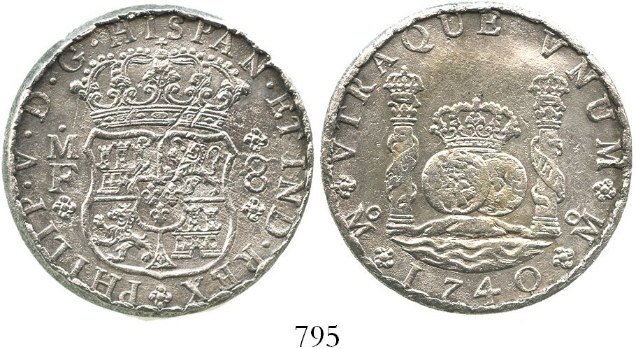 Mexico City, Mexico, pillar 8 reales, Philip V, 1740MF, incorrect rim (mint error?), with Sotheby's