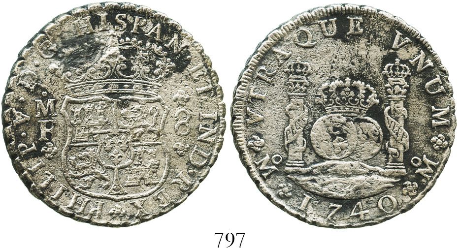 Mexico City, Mexico, pillar 8 reales, Philip V, 1740MF.