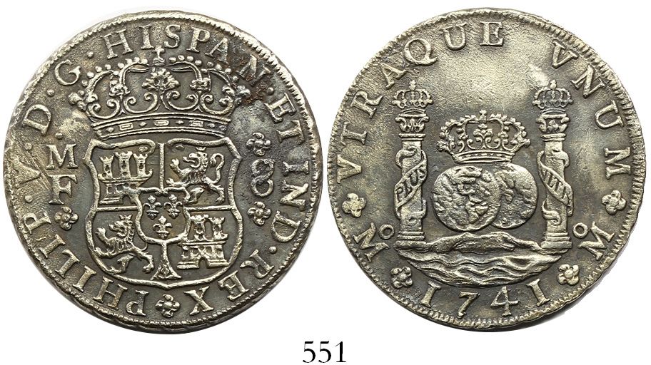 Mexico City, Mexico, pillar 8 reales, Philip V, 1741MF with 4/3, rare.