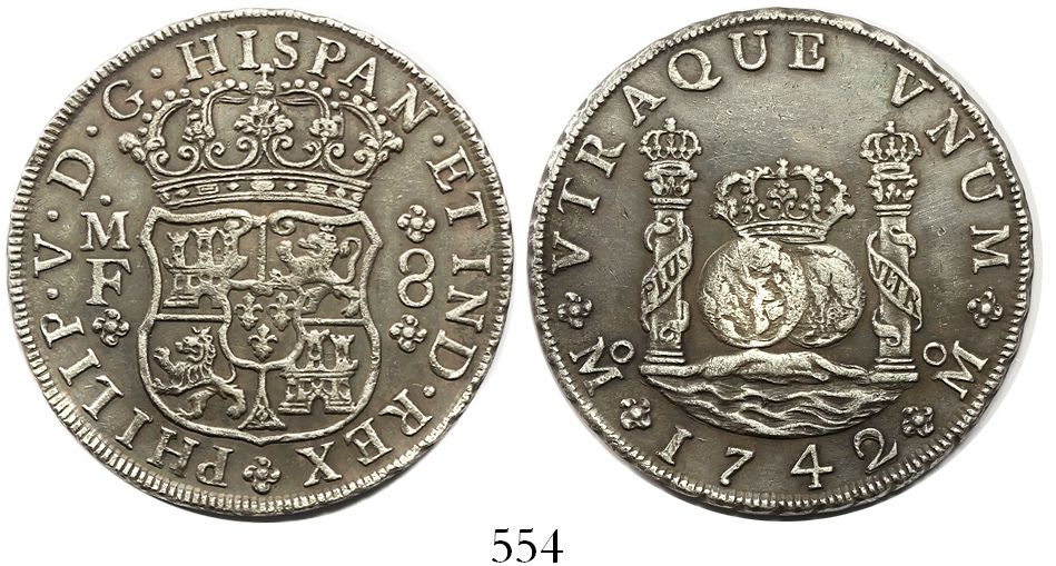 Mexico City, Mexico, pillar 8 reales, Philip V, 1742/2MF, very wide date.