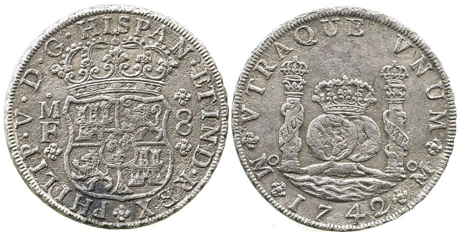 Mexico City, Mexico, pillar 8 reales, Philip V, 1742MF.