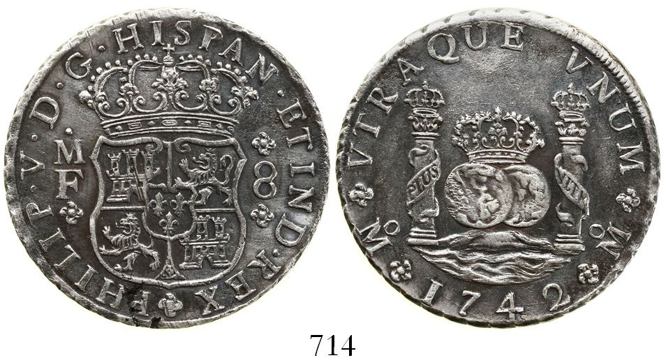 Mexico City, Mexico, pillar 8 reales, Philip V, 1742MF.