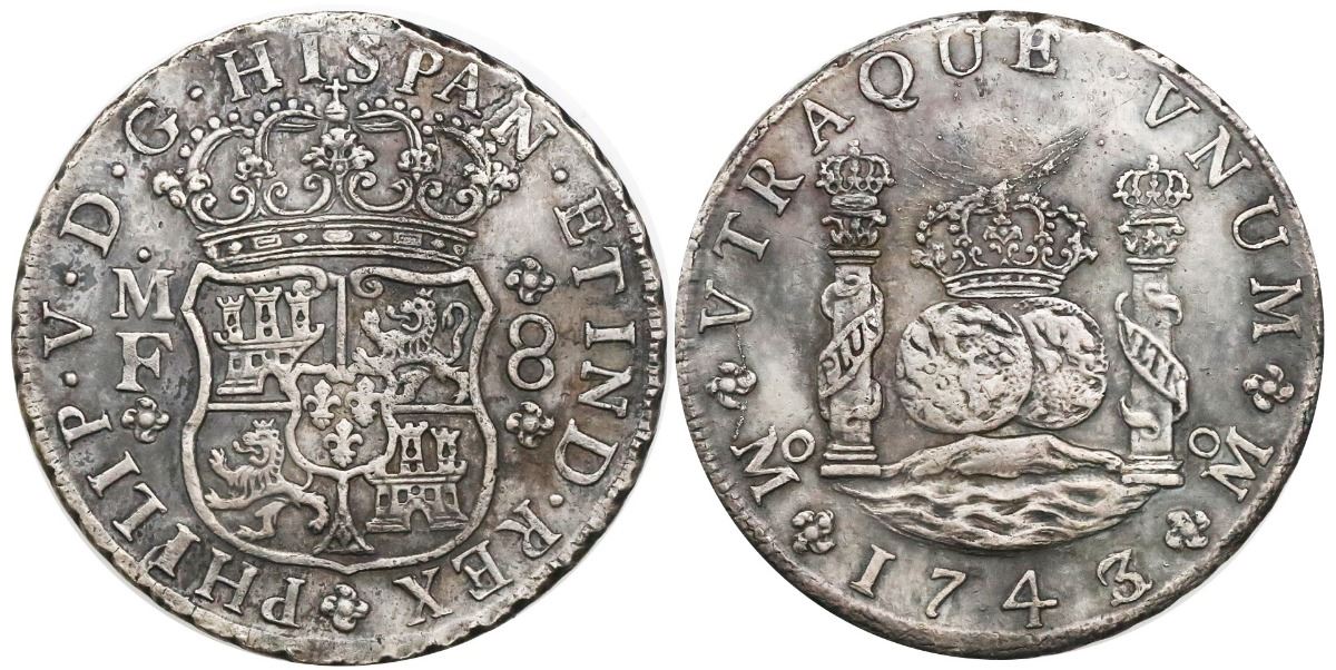 Mexico City, Mexico, pillar 8 reales, Philip V, 1743/2MF.