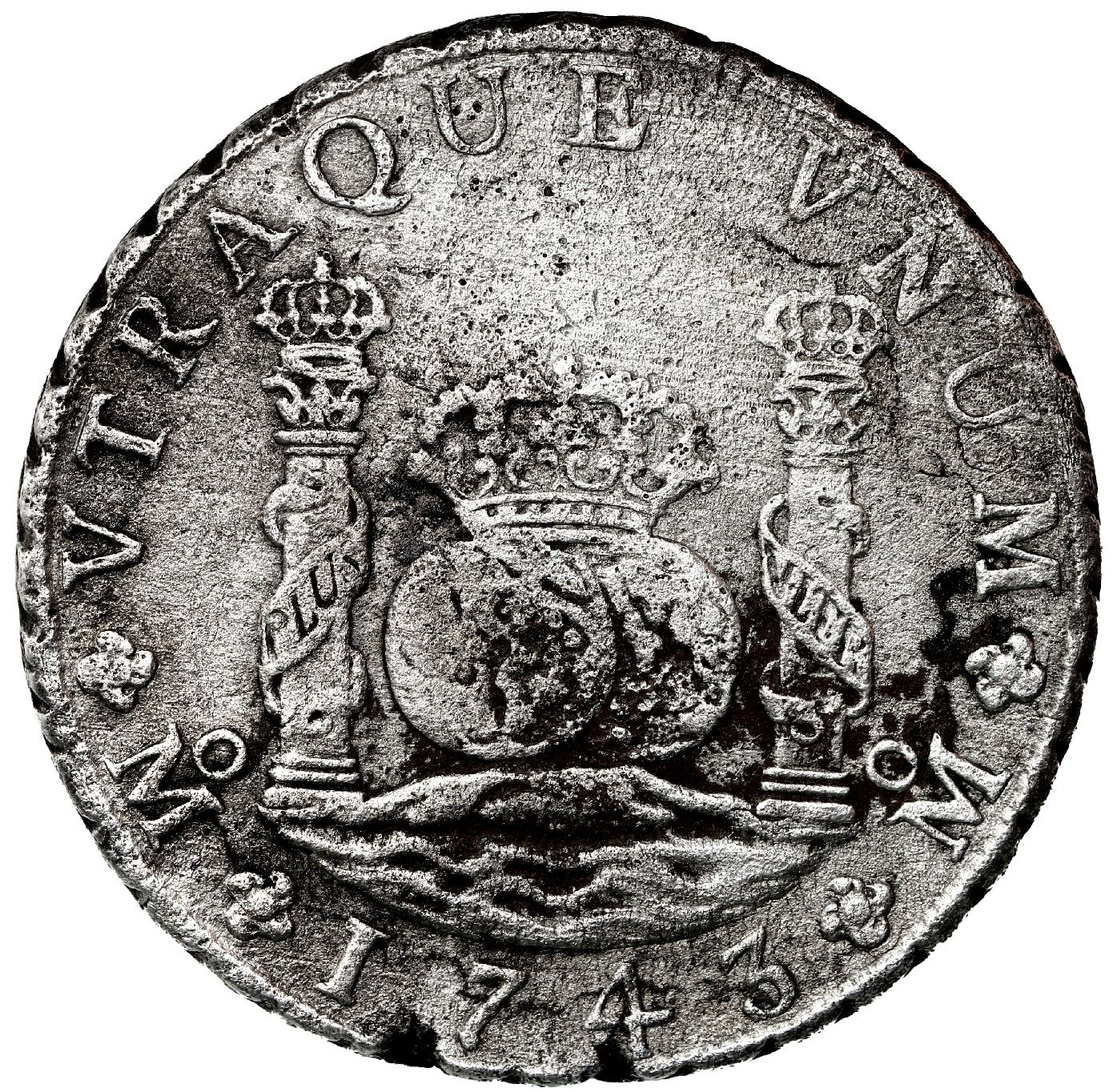 Mexico City, Mexico, pillar 8 reales, Philip V, 1743 MF.