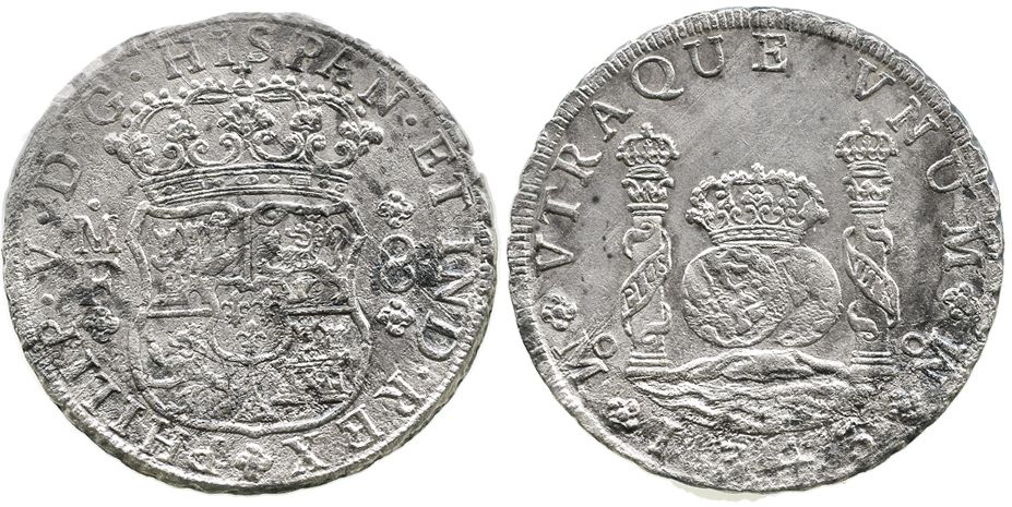 Mexico City, Mexico, pillar 8 reales, Philip V, 1743MF.