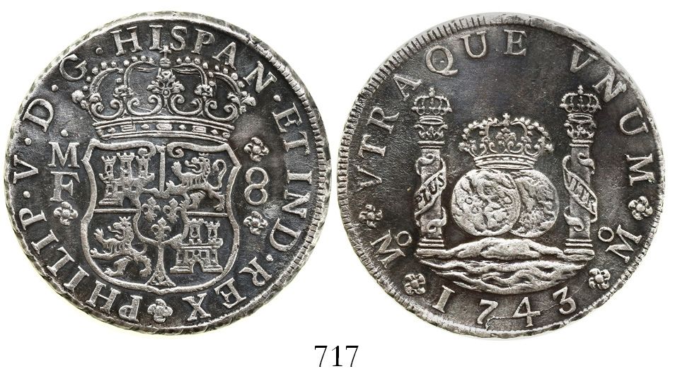 Mexico City, Mexico, pillar 8 reales, Philip V, 1743MF.