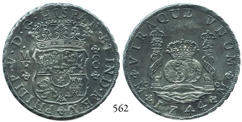 Mexico City, Mexico, pillar 8 reales, Philip V, 1744MF.