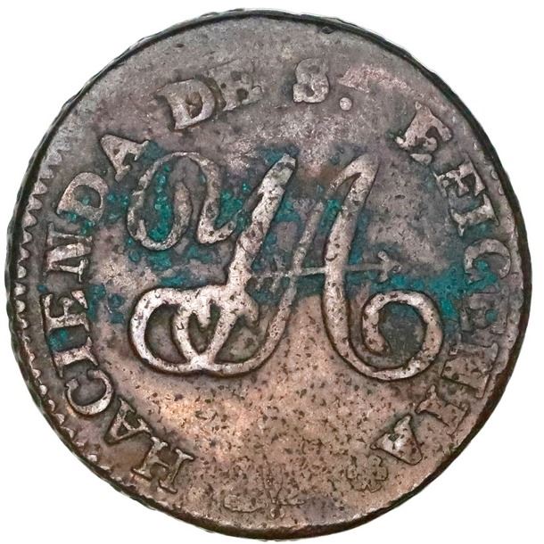 Michoacan, Mexico, bronze 1/4 real token, 1846, Hacienda de Santa Efigenia, rare.