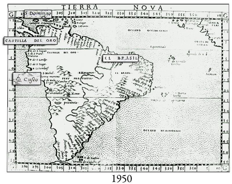 Mid- to late 1500s map of South America entitled "Tierra Nova," with Latin text on back starting with "Americae Sive Perv". 12" x 9-1/4". A full map of South America and the southern Caribbean and even the west tip of Africa with rivers and capes and islands notated but only 4 towns (Cancha, Cuzco, Caxamalca and Xauca), presumably all Incan, with the early European demarcations of Castilla del Oro (Panama and Colombia), Peru and Brazil indicated, the printed Latin text on the back no help in figuring time period but must be very early based on the map itself (possibly one of the first maps of the entire continent), excellent condition with no major flaws.