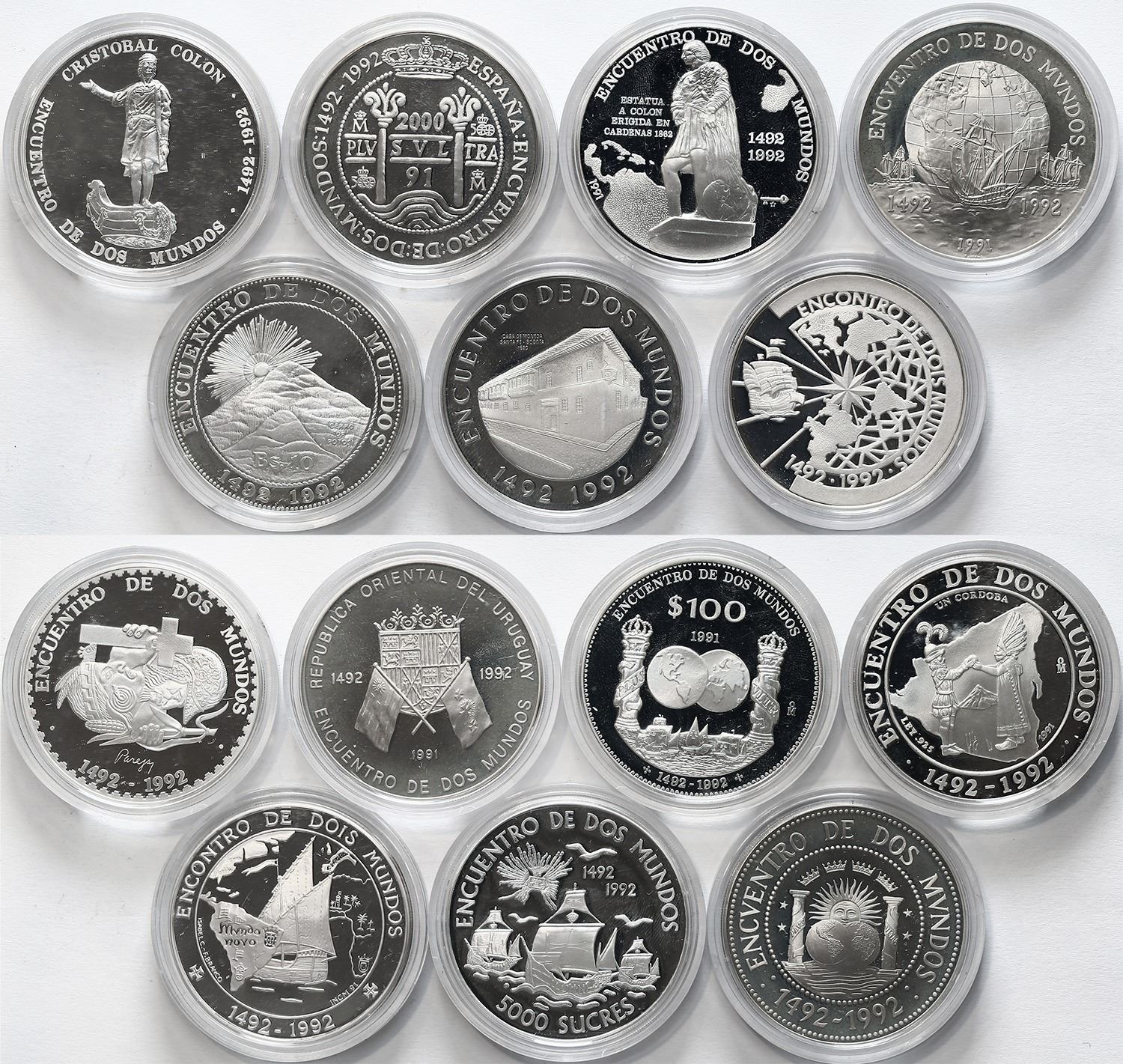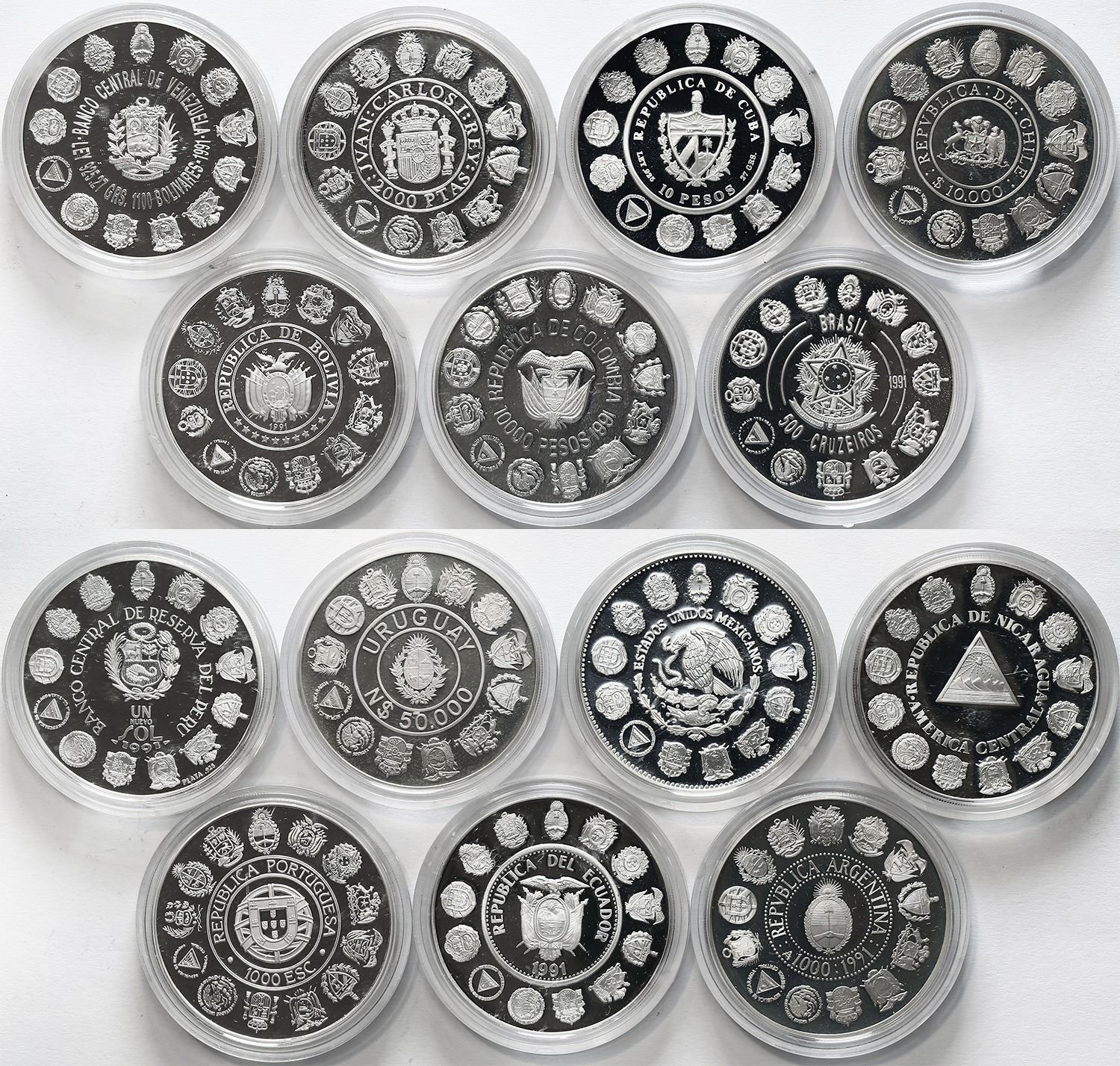 Mint set of 14 Iberoamericana coins, Series I, 1992, 500th Anniversary of the Discovery of America,
