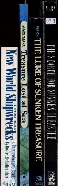 Mixed lot of 4 books by Robert Marx. Four of Marx's better illustrated overview books (some co-authored with his wife, Jennifer), including The Lure of Sunken Treasure (1973. HB/DJ, F), The Search for Sunken Treasure (1993, HB/DJ, mint), New World Shipwrecks 1492-1825 (1994, SC, F) and Treasure Lost at Sea (2003, SC, VF). Pedigreed to the Tom Sebring Treasure Library.