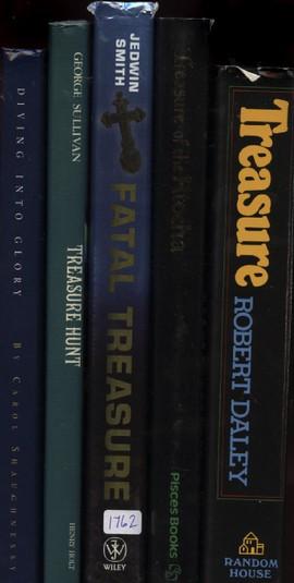 Mixed lot of 5 hardcover books about the Atocha and Mel Fisher. Instant Atocha library, with 3 of the standards and 2 newcomers, all with dust jackets intact: Treasure, by Robert Daley (1977, VF); Treasure of the Atocha, by R. Duncan Mathewson, III (1987 2nd printing, VF); Treasure Hunt, by George Sullivan (1987, HB/DJ, VF); Fatal Treasure, by Jedwin Smith (2003, VF); and Diving Into Glory, by Carol Shaughnessy (2004, F). Pedigreed to the Tom Sebring Treasure Library.