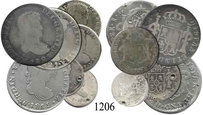 Mixed lot of 7 Zacatecas, Mexico (War for Independence), bust 2, 1 and ½ reales, Ferdinand VII, 1819