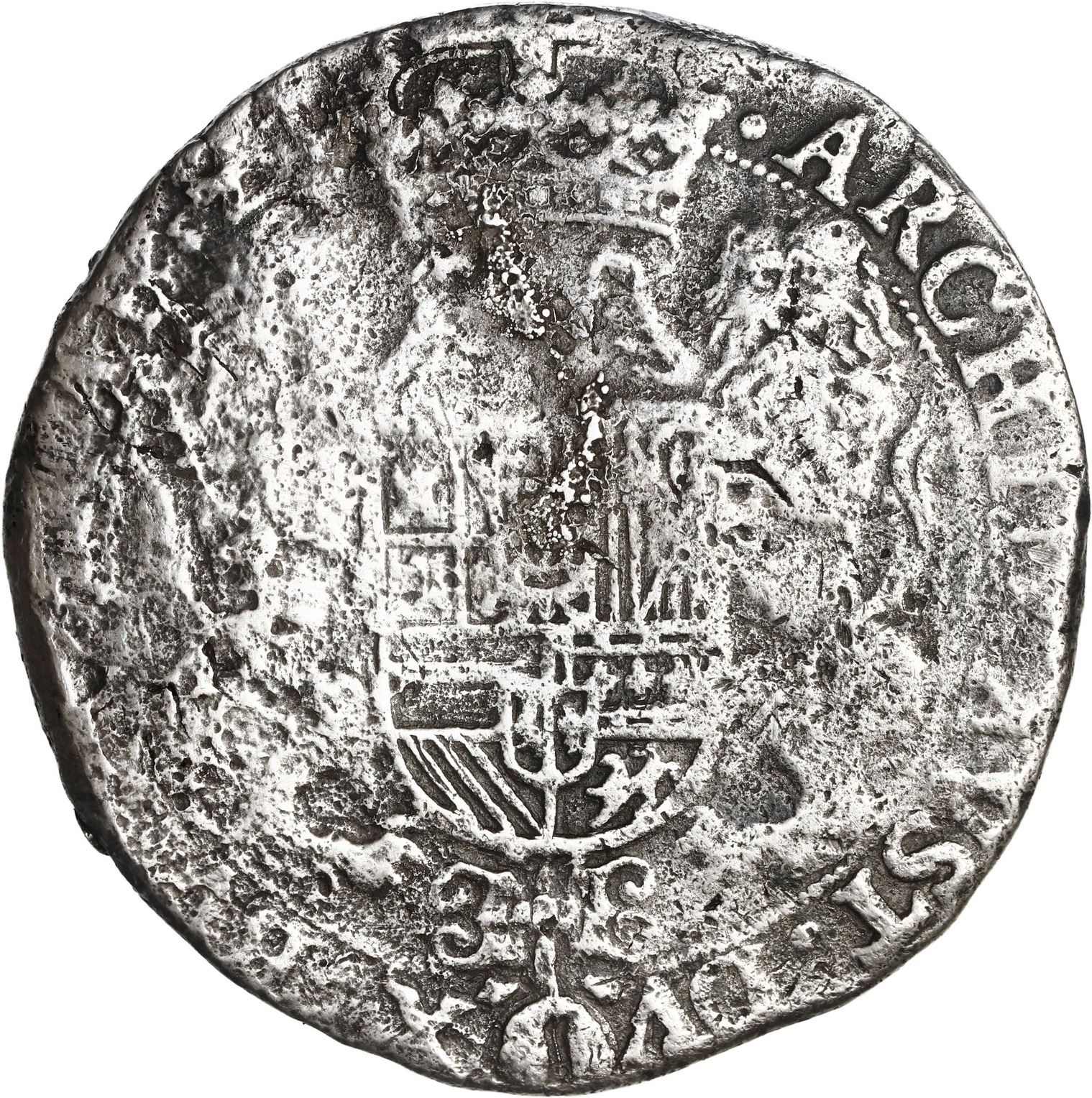 NETHERLANDS (Spanish), Brabant, Antwerp mint, portrait ducatoon, Philip IV, 1639. Dav-4454; KM-72.1. 30.98 grams. Very bold full obverse legend including full date and mintmark (hand), decent portrait, the reverse a bit corroded but still clear, toned on fields. Pedigreed to the Steve Valentine Collection, with original certificate from the salvor/conservator. Recovered from: Merestein, sunk in 1702 off South Africa