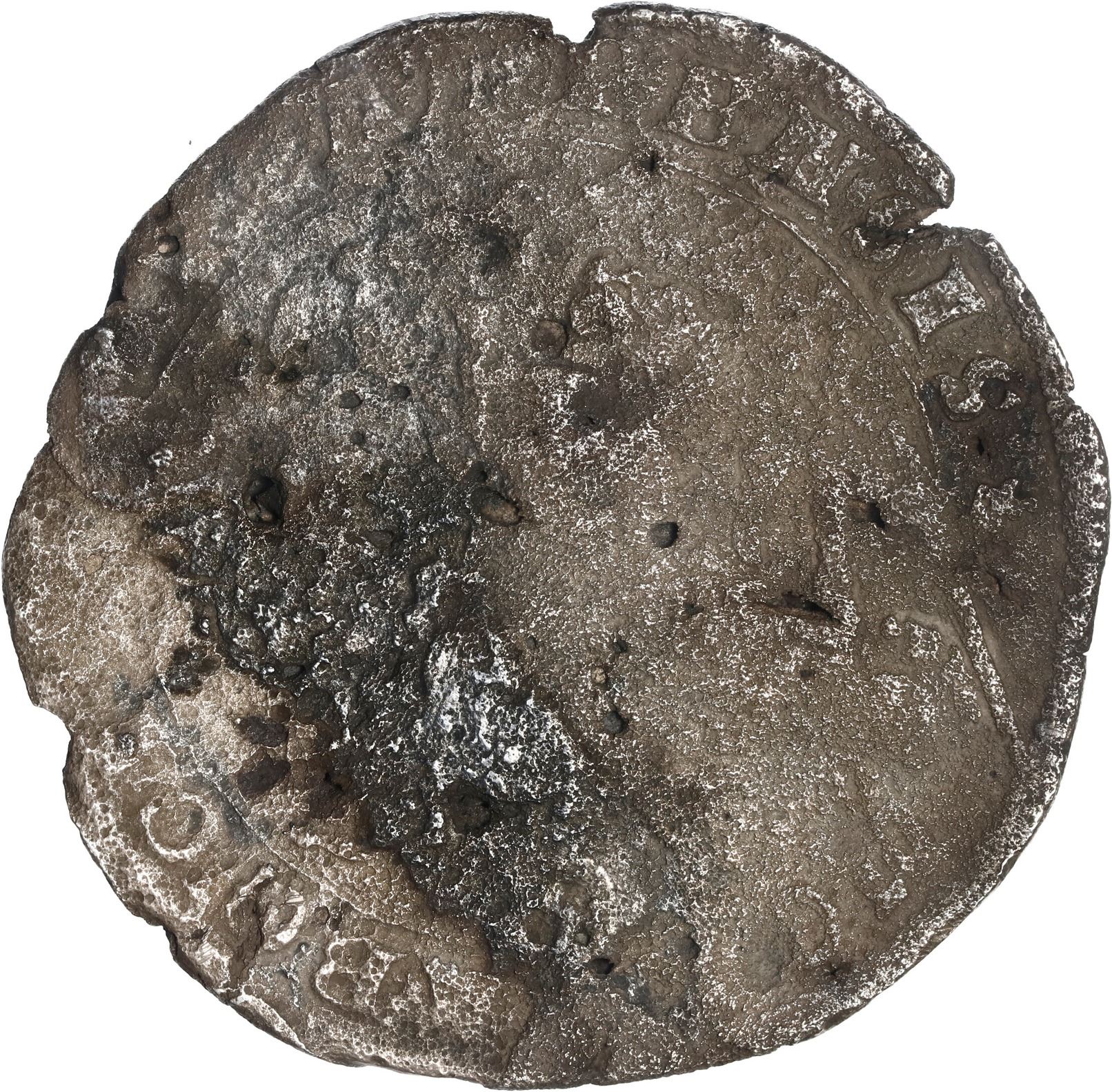 NETHERLANDS (United), Campen, rider ducatoon, 1670(?). Delm-1039; Dav-4945; KM-61.1. 27.07 grams. Corroded piece with date not certain, slight bend in the planchet with rough edges. With original Sotheby HOLLANDIA envelope. Recovered from: Hollandia, sunk in 1743 off the Isles of Scilly, southwest of England