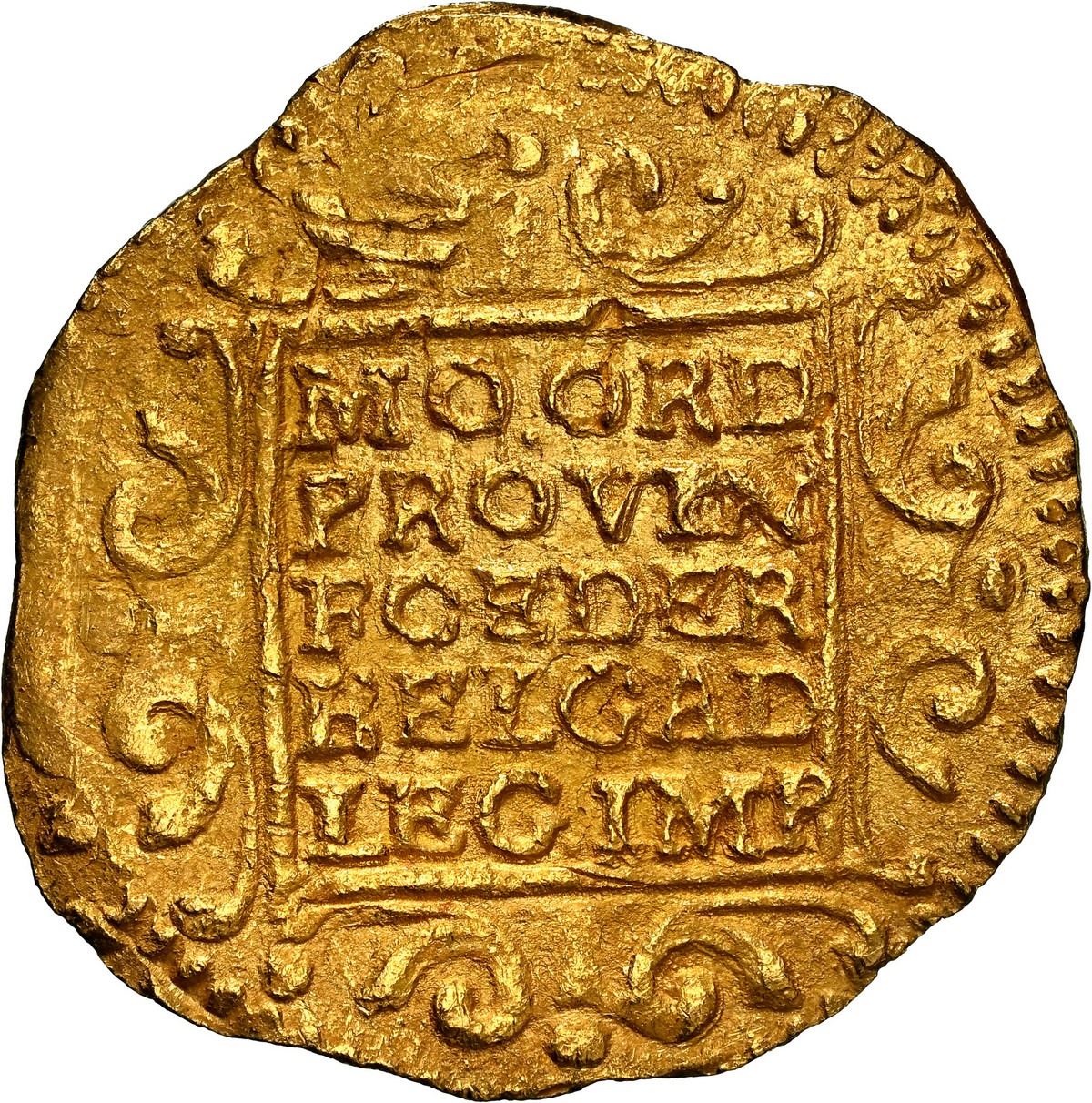 NETHERLANDS (United), Utrecht, gold ducat, 1724, NGC MS 62 (Shipwreck Blue Label). KM-7.4; Fr-285. Very broad flan with metal extending past the outer borders, fully detailed knight's head, muted luster, very slightly wavy (as made). Recovered from: Akerendam, sunk in 1725 off Norway