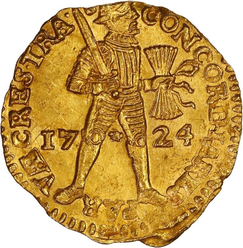 NETHERLANDS (United), Utrecht, gold ducat, 1724, NGC MS 64 (Shipwreck Blue Label).