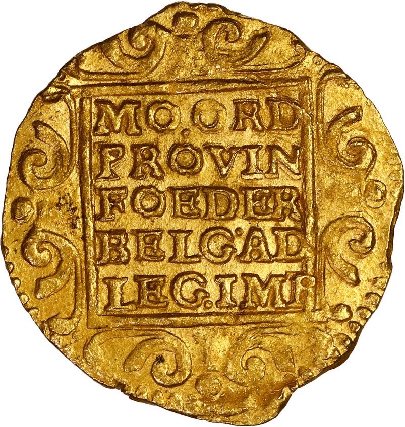 NETHERLANDS (United), Utrecht, gold ducat, 1724, NGC MS 64 (Shipwreck Blue Label). Delm-965; Fr-285; KM-7.4. 3.54 grams. Bold strike and strong luster, knight's head fully detailed but partially off the flan, parts of edge slightly crude (as made). Recovered from: Akerendam, sunk in 1725 off Norway